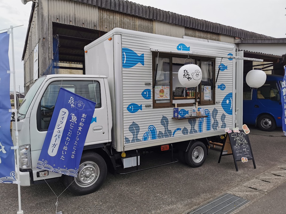 丸亀市飯山町の創作和食の店「ひらた」がキッチンカー「ひらたや」として2022年5月3日(火)からフィッシュバーガーを販売してる。市場で仕入れた新鮮な鮮魚を使ったフィッシュフライが食べられる