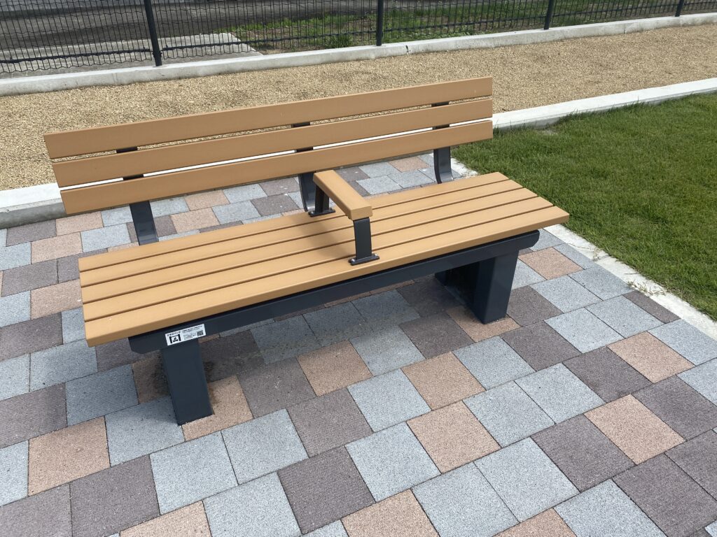 こちらは収納ベンチで、防災パーゴラや地下収納式トイレで使用するテントを収納することができるそうです。
