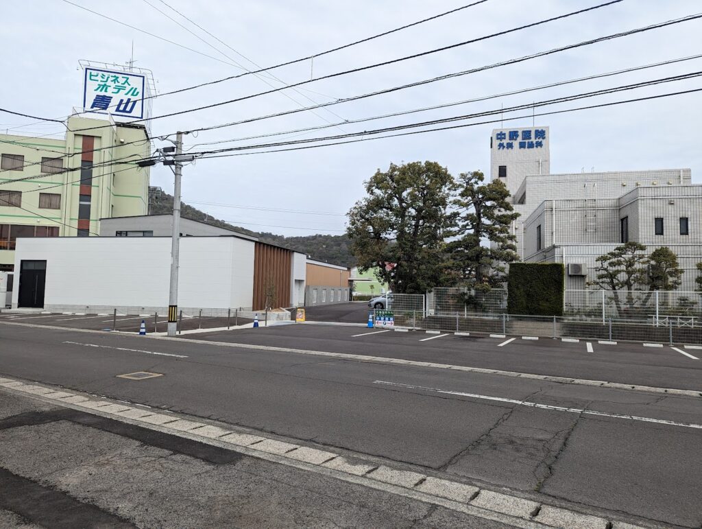場所は、ビジネスホテル 青山や中野外科・胃腸科医院がある通りの裏手西側にある道路沿いに店舗があります。