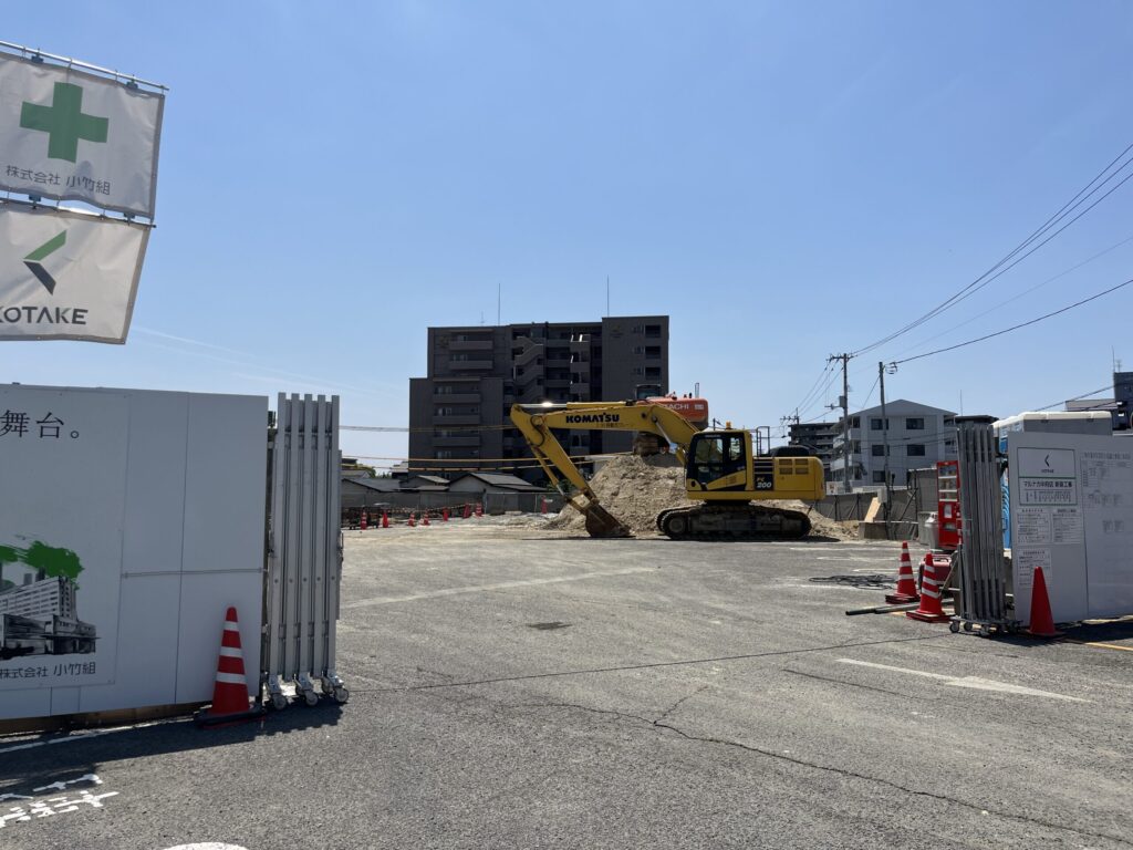 広い敷地は囲いで覆われていて本格的に工事が行われています。