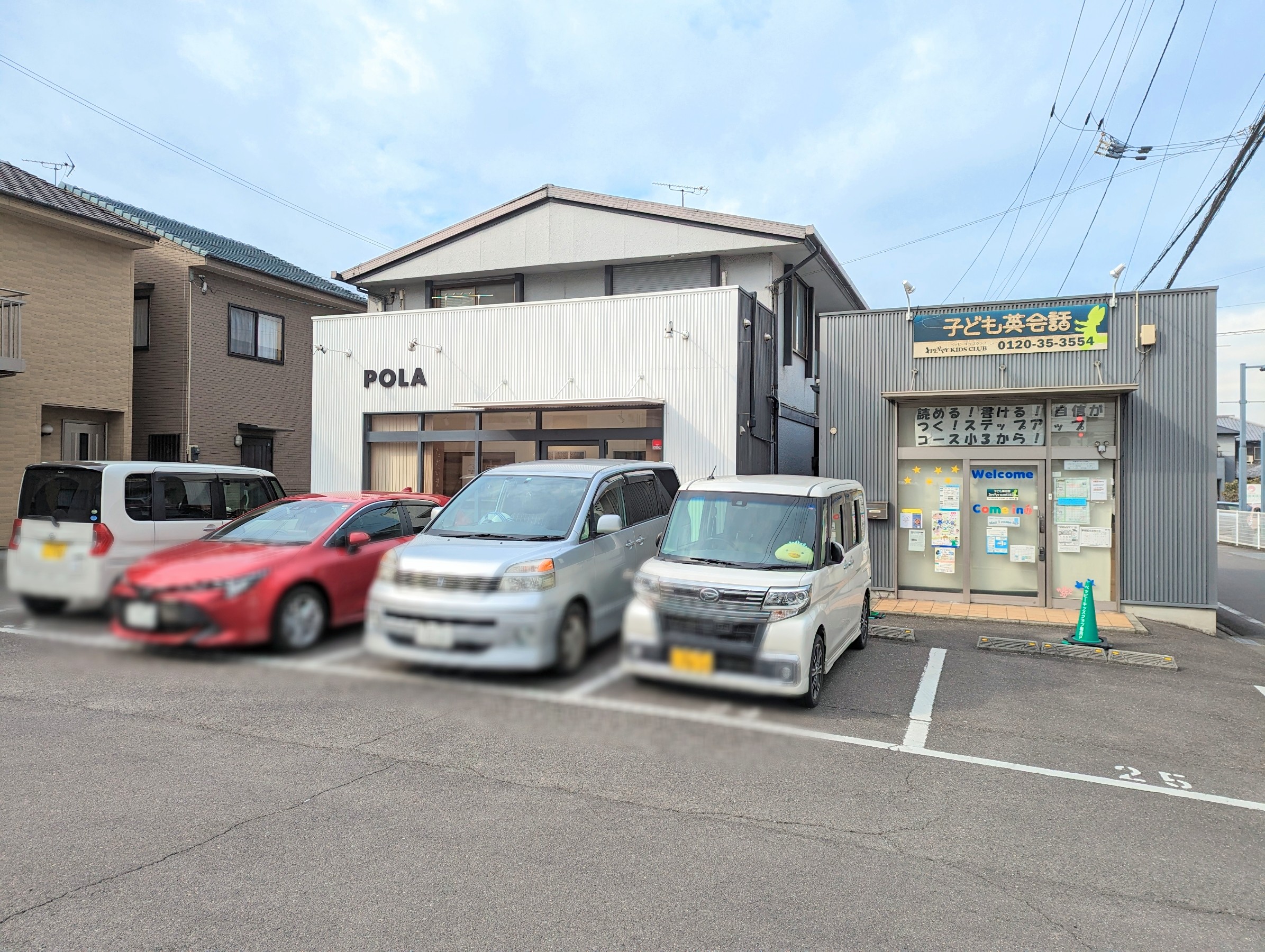 駐車場は店舗前に3台と子ども英会話ペッピーキッズクラブ 第2郡家教室前2台駐車可能です。