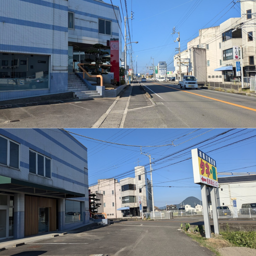 業務スーパー 丸亀店」がある県道33号線沿いに店舗があり、近くには「武岡皮膚科クリニック」や「黒川種苗園 丸亀店」があって、「黒川種苗園 丸亀店」の大きな看板が目印になってます。