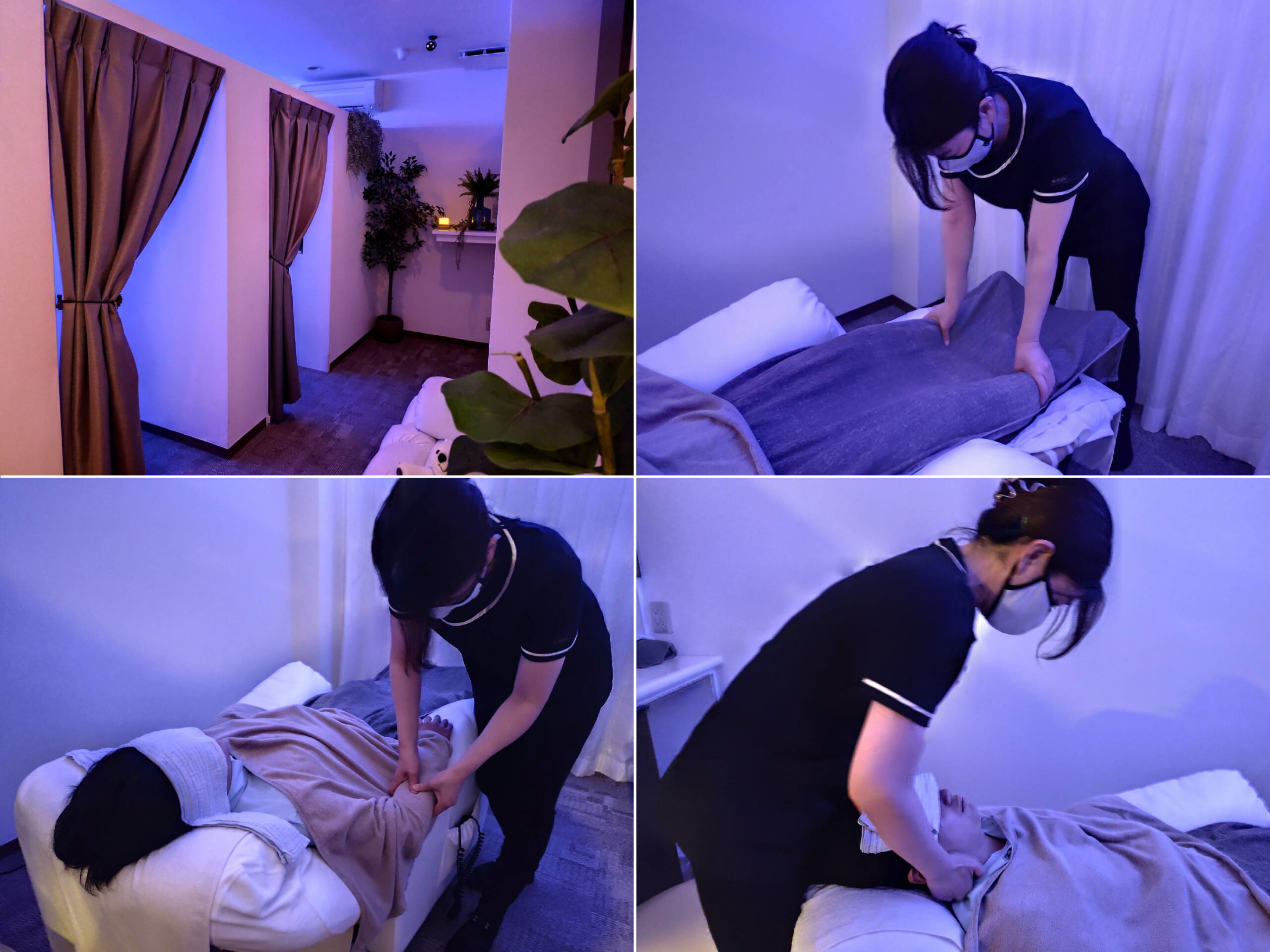 この神秘的な照明と優しいBGMでKさんは既にリラックス状態に突入してます(笑) リクライニングシートの上で施術が始まる頃にはリラックスは最高潮に。