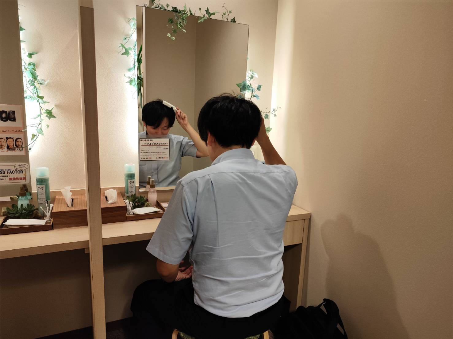 施術で乱れたヘアーなど、別室のパウダールームでしっかり身だしなみも整えられます!