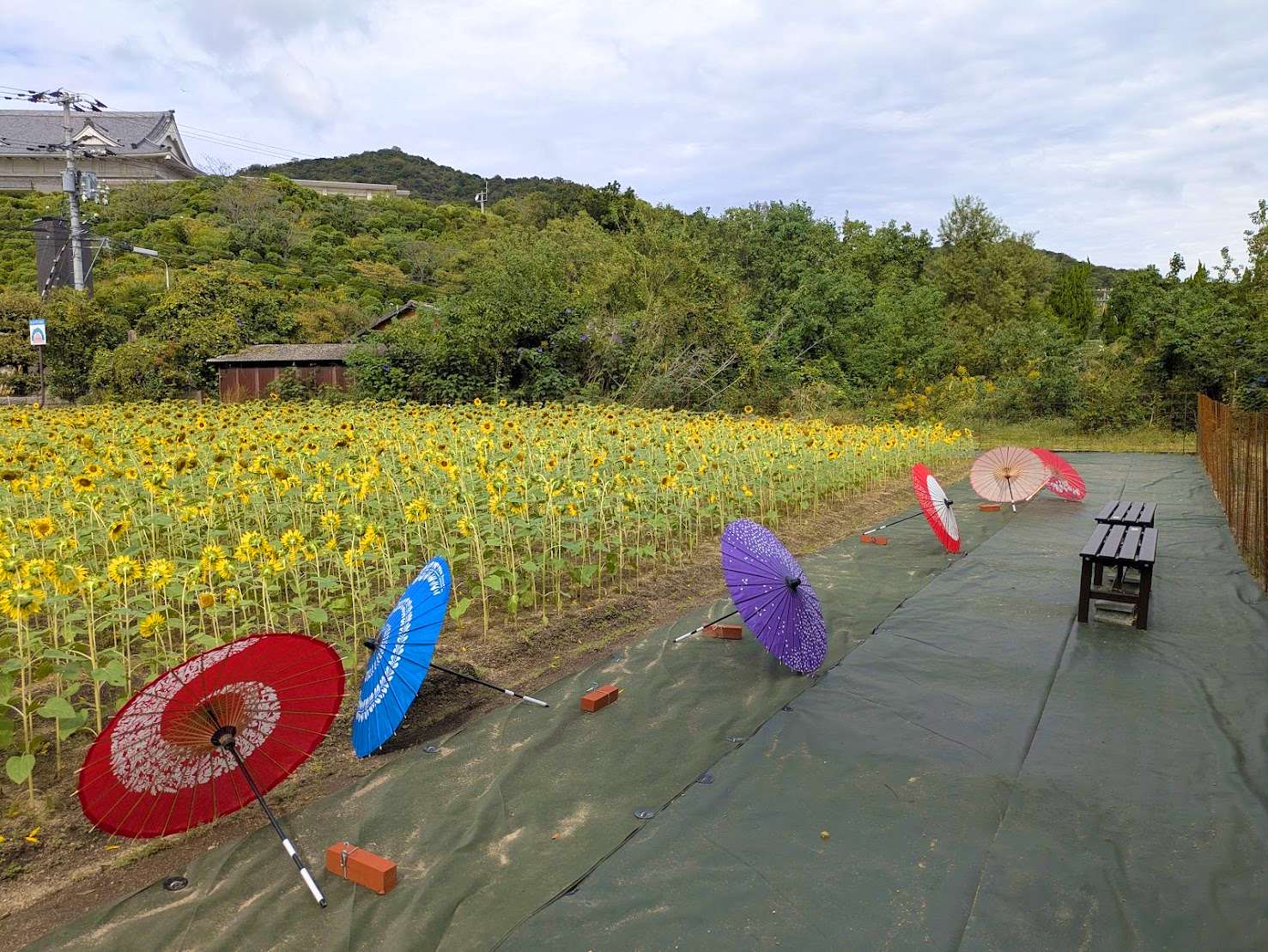 人気の撮影スポットに! 番傘&ひまわりアイテムでパシャリ