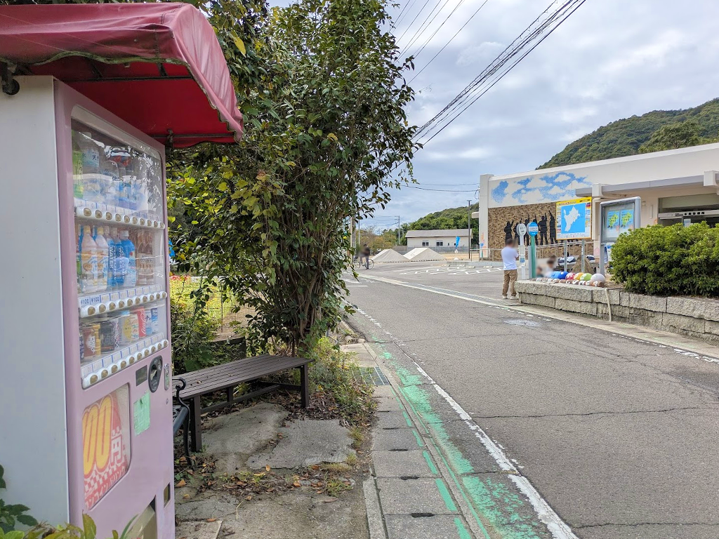 自販機の隣には、木のベンチとアイアン調の椅子が置かれ、「島のやさしさ」を感じられる小さな小さな癒しの休憩処になってるようです。観光や散歩の途中で見かけたら、ちょっと立ち止まってみてくださいね♪