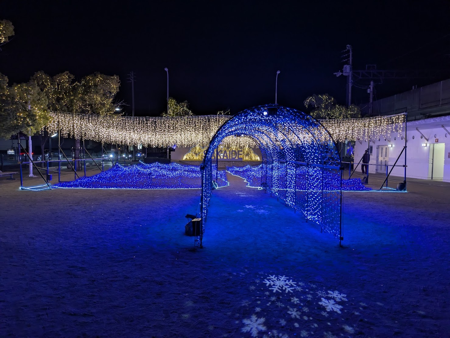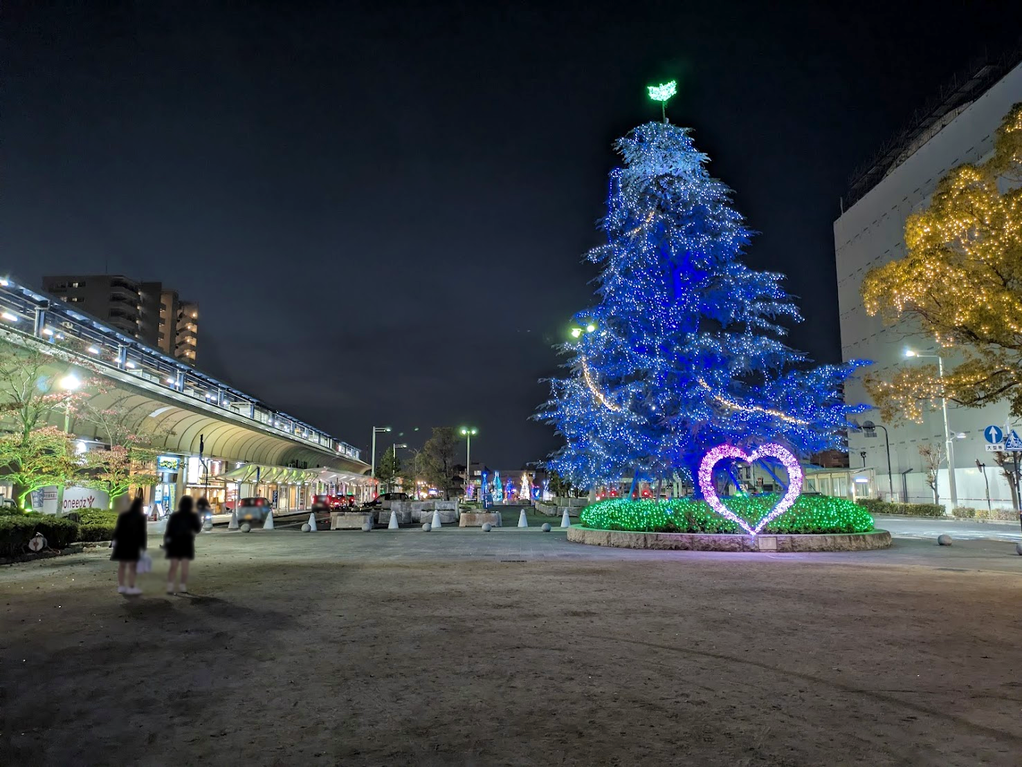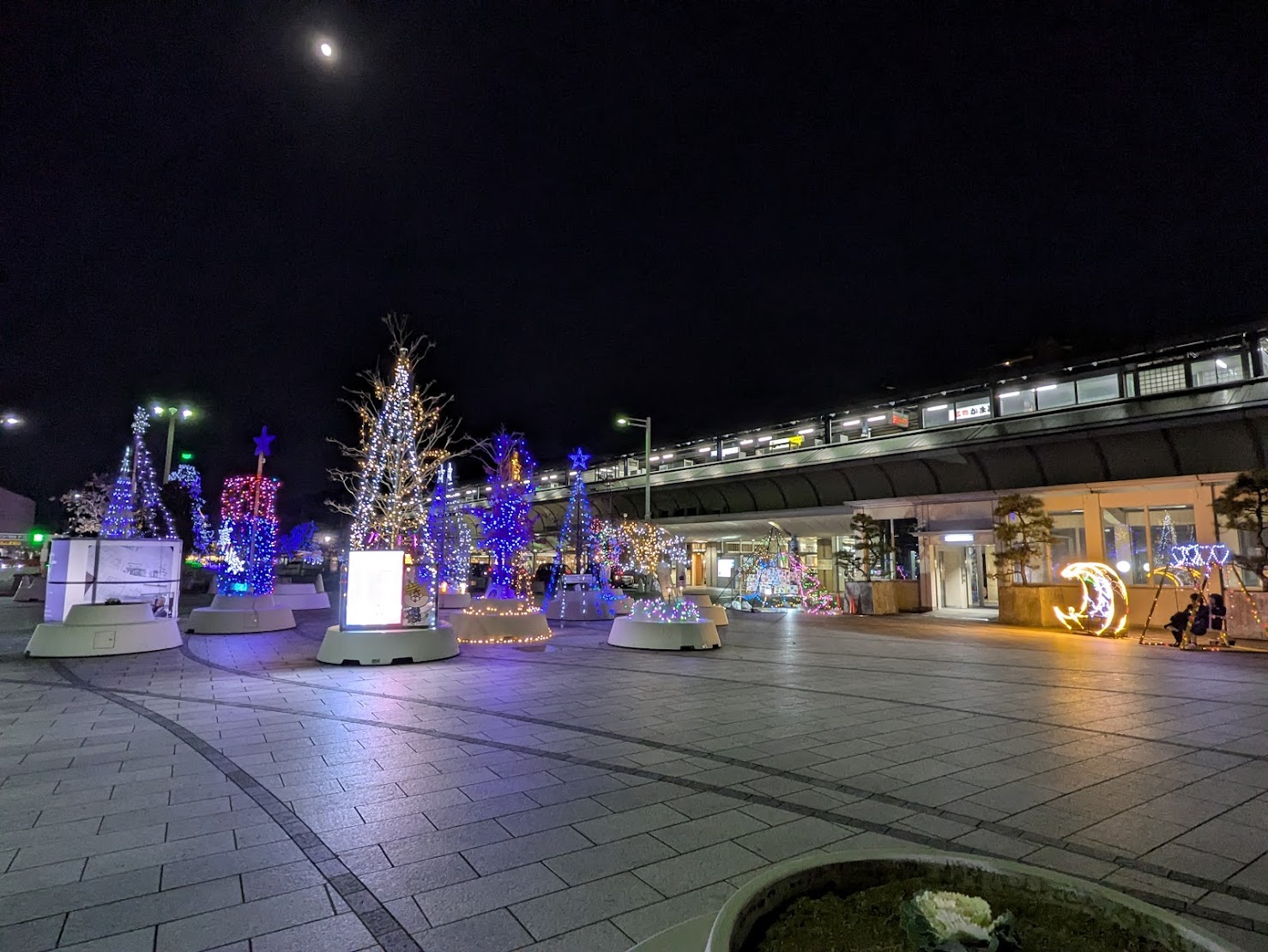 駅前のハナミズキ広場では市民団体や企業等が出展し、それぞれの趣向を凝らしたイルミネーションが広場を彩っています。あと、隠れイルミネーションスポットとして、地下駐車場のゲート付近にクリスマス仕様のイルミネーションが設置されてたので、駐車場を利用する方はそちらも探してみてくださいね♪