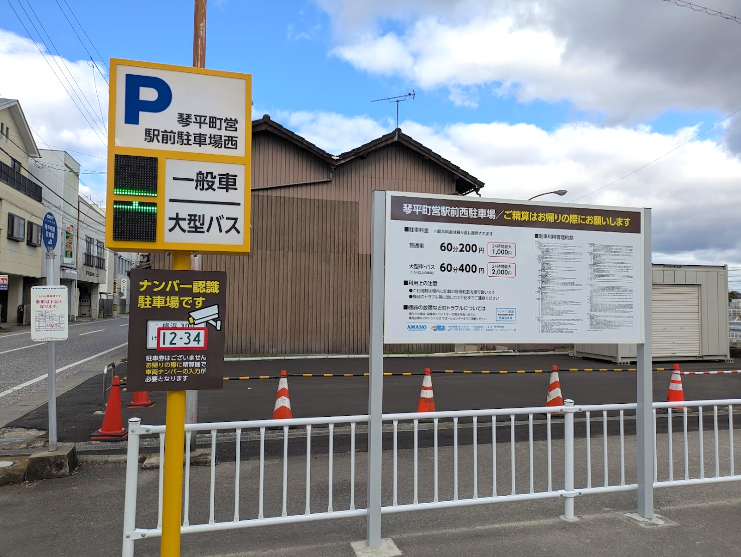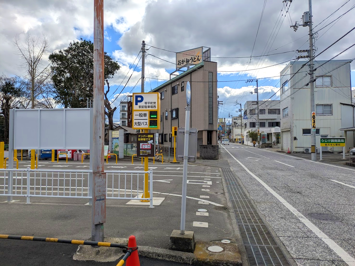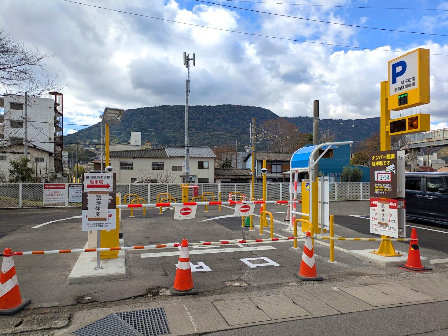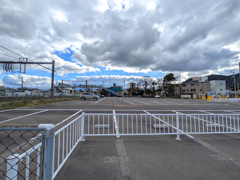 続いて、線路を挟んで反対側にある「琴平町営駅前東駐車場」。 こちらは12月18日(木) 午前6時30分から再開とされてましたが、残念ながら、東駐車場は12月19日(金) 午後6時から「当分の間」臨時休業が延長されることになったそうです。