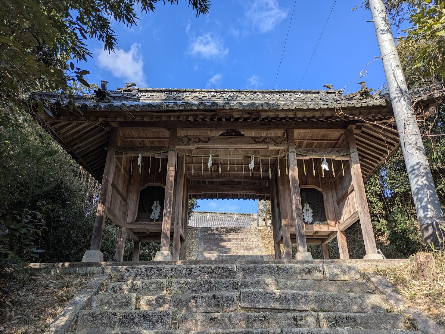 ここは、室町時代にこの地を治めた羽床氏によって造営されたといわれる歴史ある神社。 歴史の重みを感じる厳かな空気と、生い茂る緑が織りなす幻想的な雰囲気は、まさにアニメのワンシーン。梅を目当てに来たことを一瞬忘れてしまうほど、その独特の世界観にグイグイ引き込まれてしまいます。