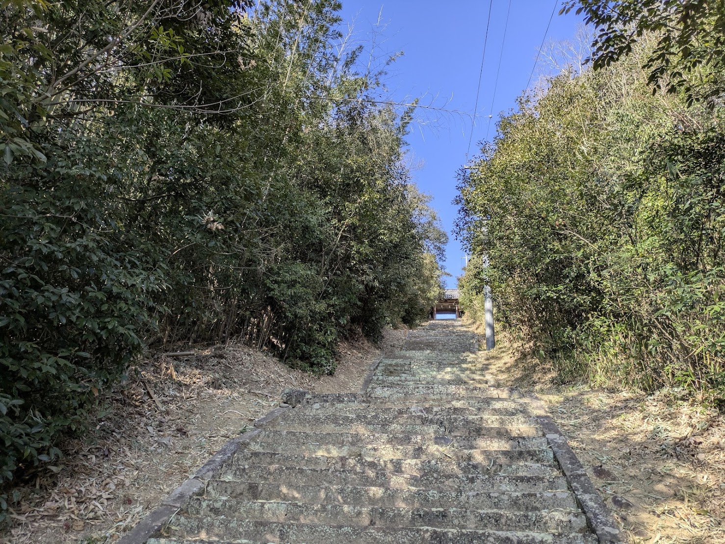 こんぴらさんのような長〜い階段が続きますが、両脇の竹林から聞こえる「サワサワ…」という笹の音や「ギギィ…」と竹が軋む音が心地よく、鳥のさえずりも相まって最高の癒やし空間です。