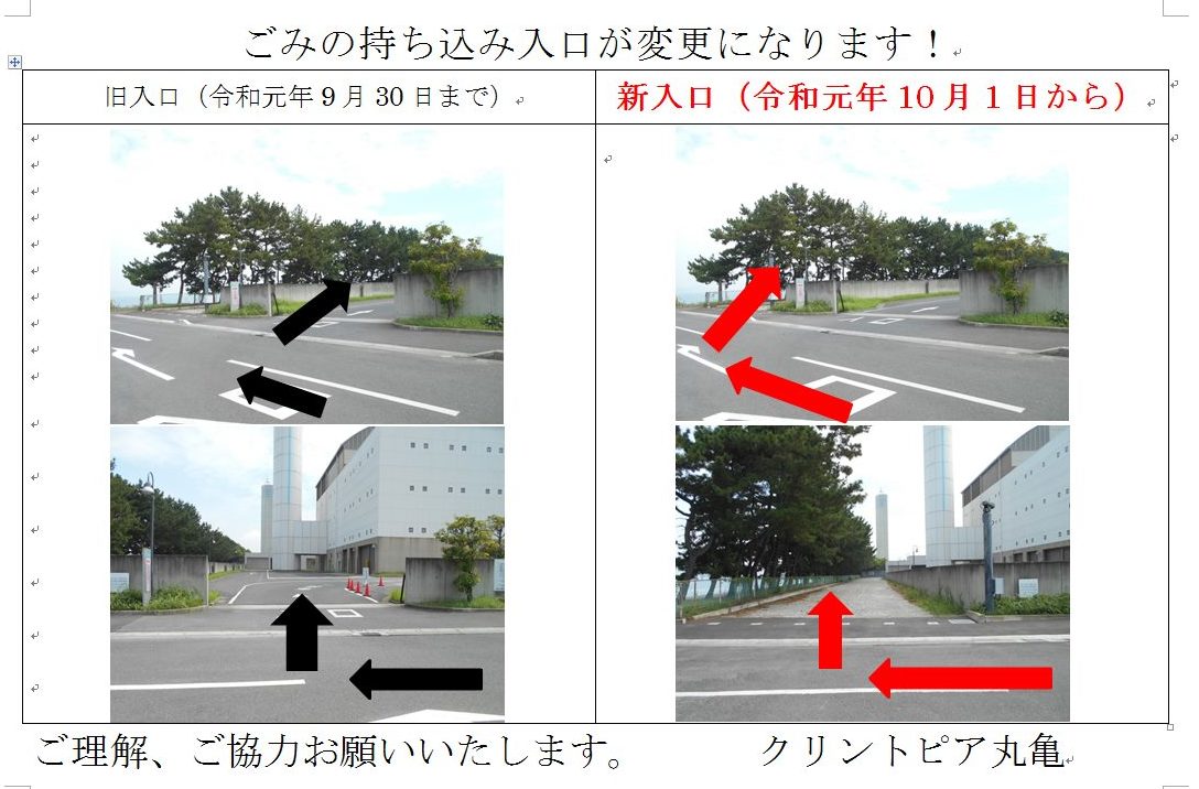 「クリントピア丸亀」にごみを持ち込む際の搬入口が、10月1日(火)から変更されるそうです。