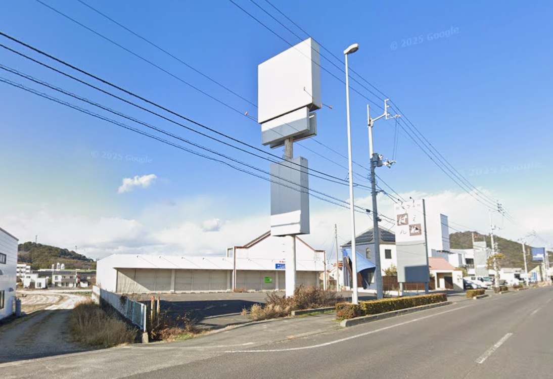 閉店後は、文字が消されてずっと真っ白な状態で立っていた建物と看板。国道11号を走る人たちにとっては、もはや風景の一部になっていましたが先週、ついに大きな看板は撤去されていました。
