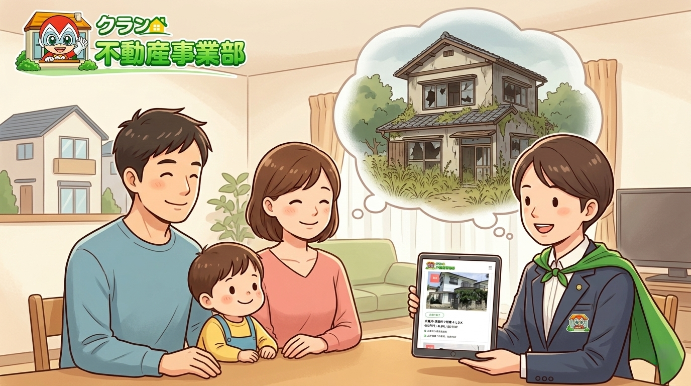 「実家の土地、どうしよう・・・」「空き家の雑草が近所迷惑になっていないか心配」など、家や土地に関するお悩みをお持ちの方は、一人で抱え込まずに、ぜひ一度クランさんに相談してみてくださいね。可愛いクラッチくんと、頼もしいスタッフの皆さんが、きっとお悩みをスッキリ解決してくれるんじゃないでしょうか♪