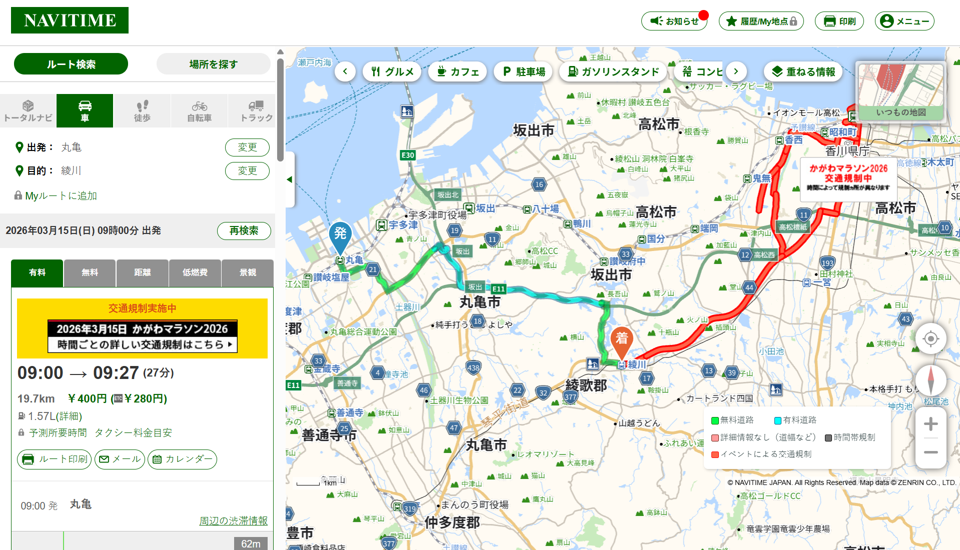 NAVITIME(ナビタイム)と連携していて、「3月15日の規制」を考慮したルートを勝手に計算してくれるんです。