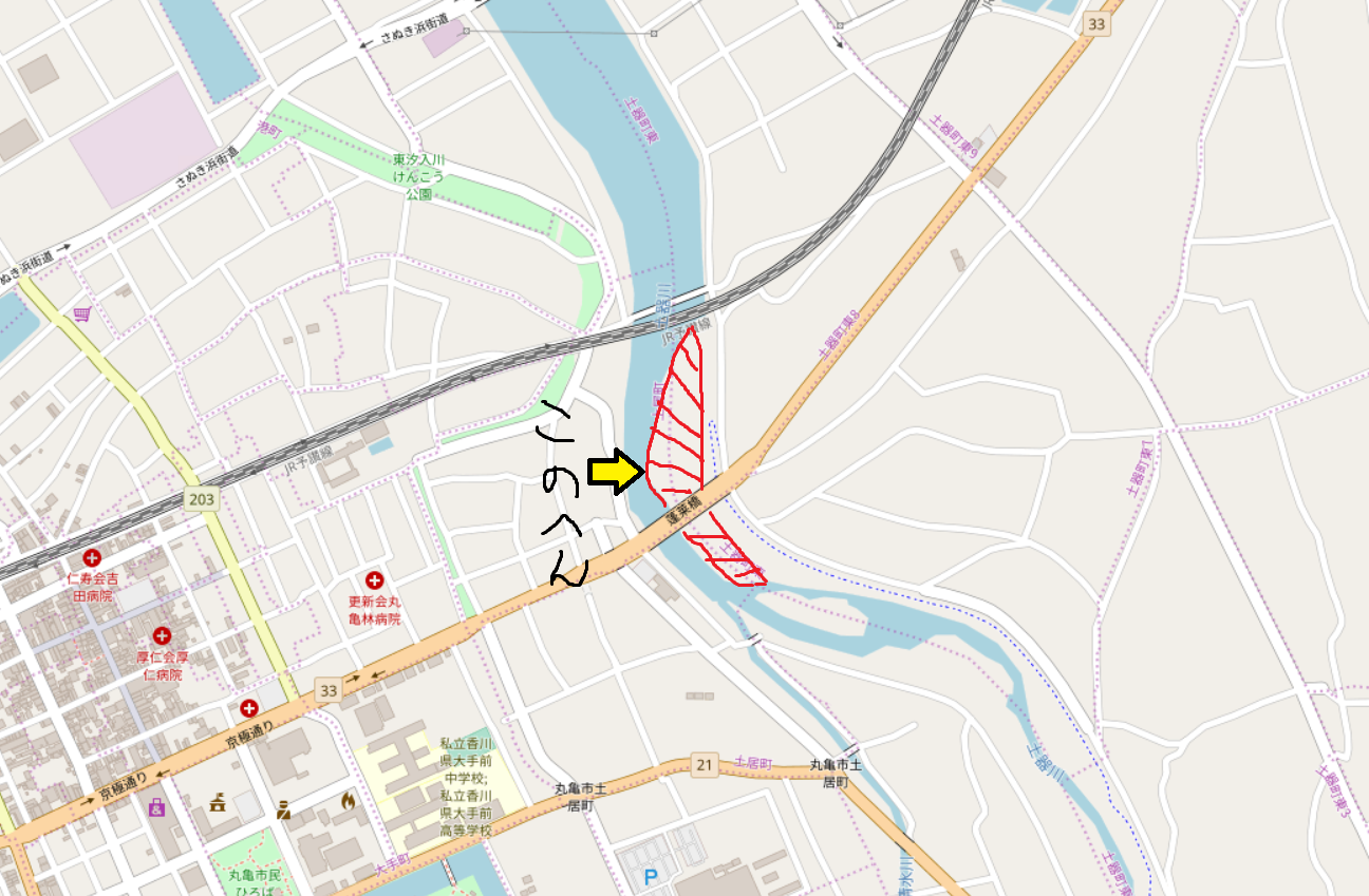 また、土器川東岸の道路を走っていると、川沿いにあった建物の多くが立ち退いていることに驚かれた方も多いのでは。