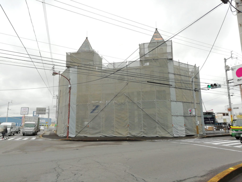 長年市民に親しまれてきた「旧メガネの三城 丸亀本店」のお城風店舗が解体されるそうです。