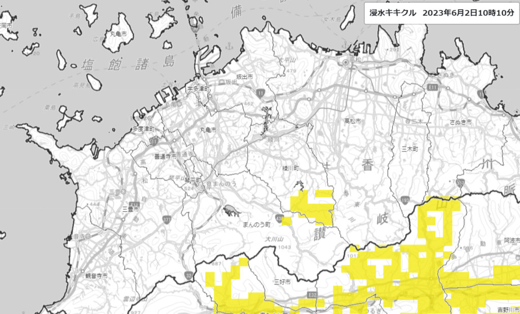 10時の段階で丸亀市、善通寺市、綾川町、まんのう町の一部の地域では高齢者等避難が必要となる「警戒レベル3」の状況になっています。