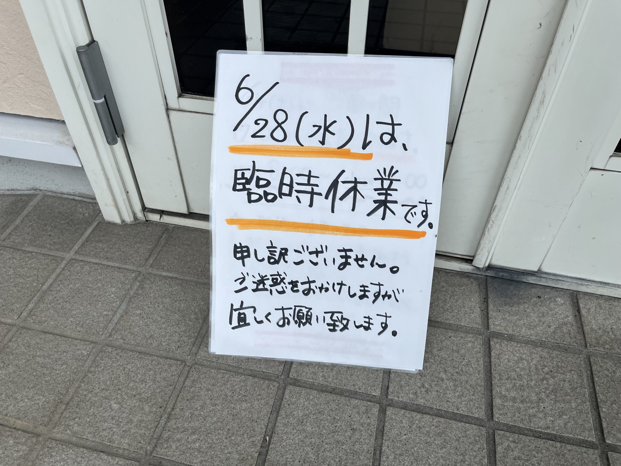 この日も翌日2023年6月28日(水)の臨時休業について別の紙で貼りだされていました。