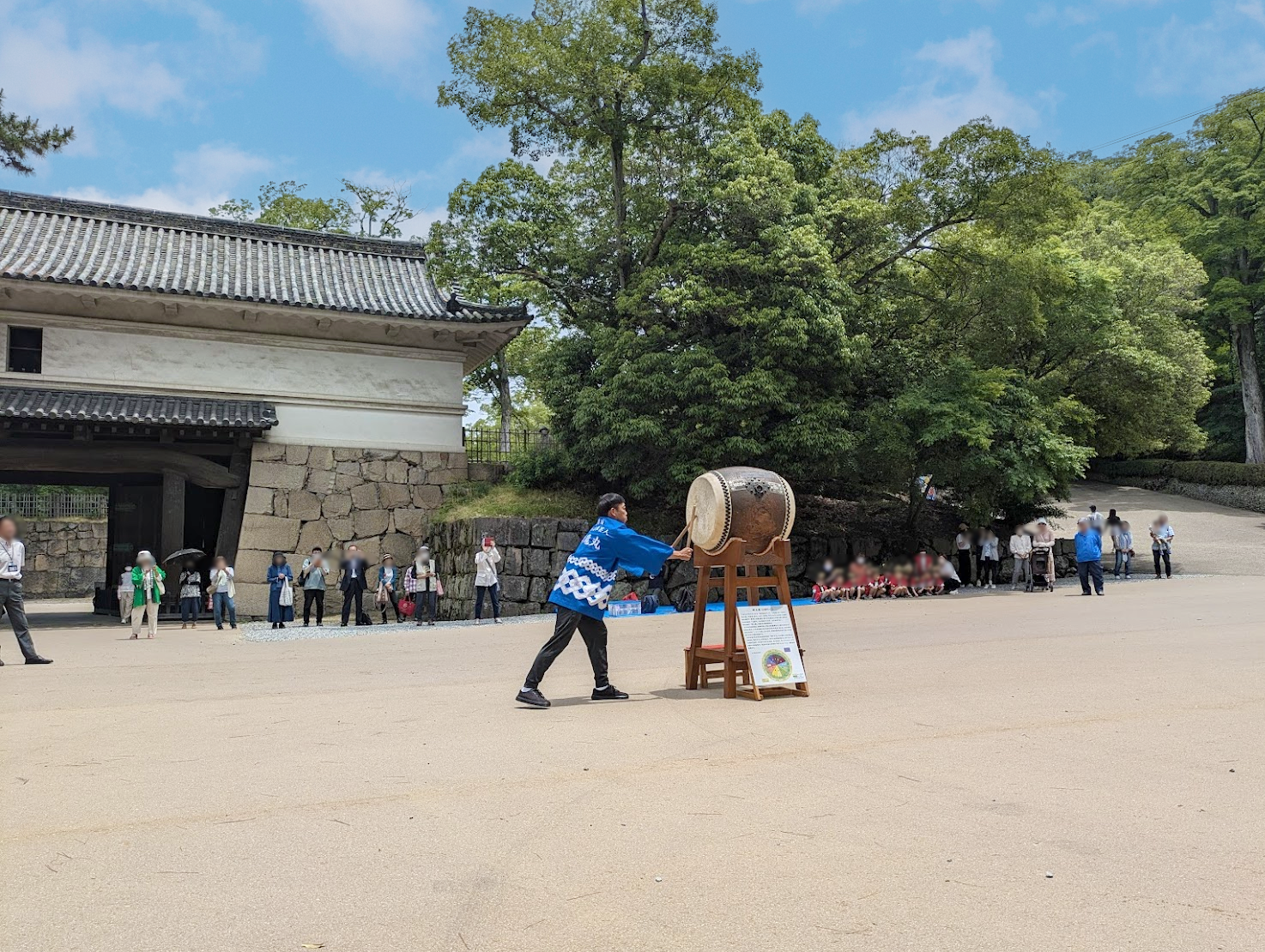 丸亀城の「丸亀歳時記時太鼓打ち鳴らし式」で時の刻みを告げる太鼓のいろんな音色が響き渡ってた