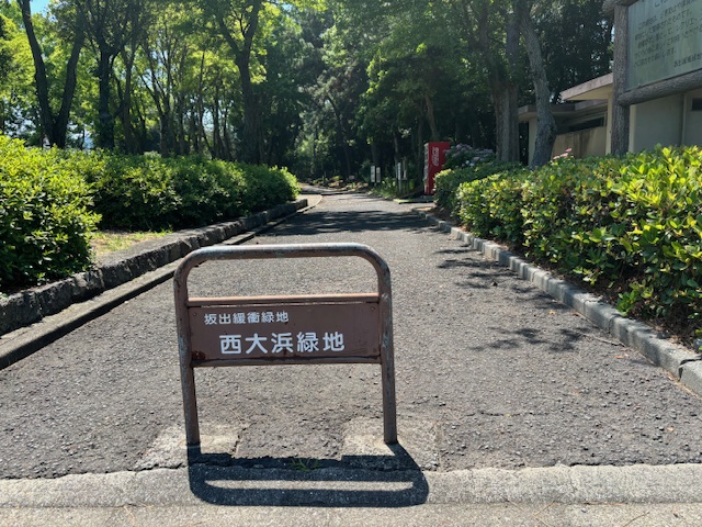西大浜緑地は季節ごとの花が咲き、夏でも木陰で涼しく地元民の散歩コースとして定番の場所なんですが、そんな日常の場所を散歩していると1枚の看板が目に飛び込んできました!