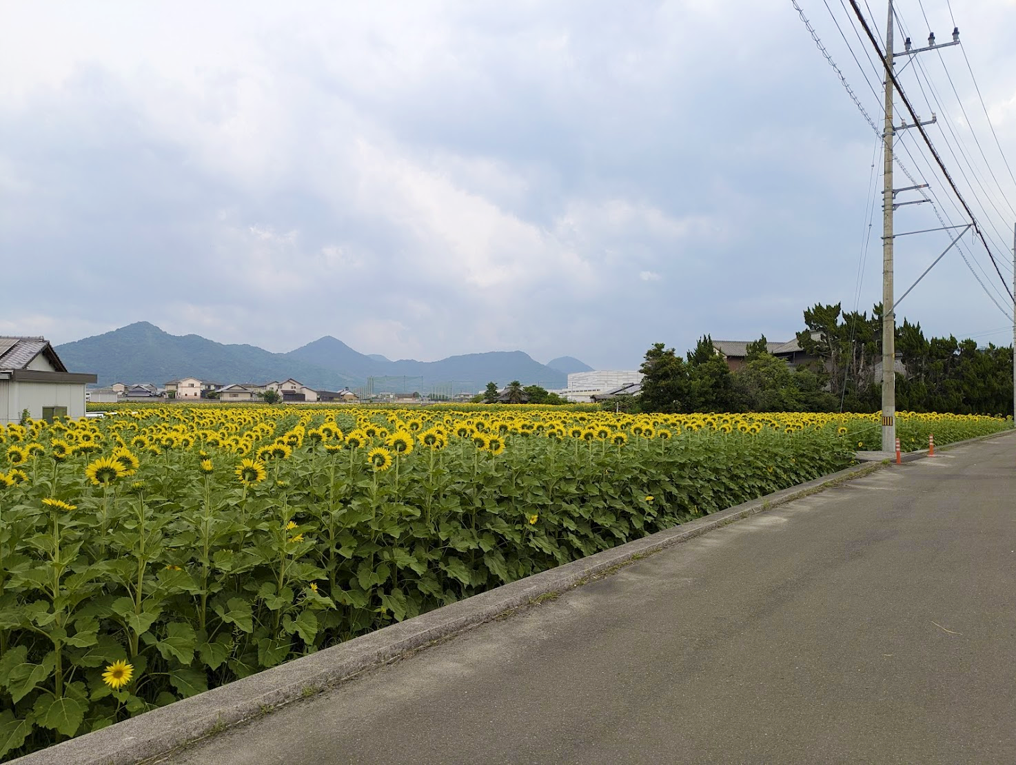 まんのう町内のひまわりが見頃を迎えているようで、まんのう町内を車で走っていると、あちこちで鮮やかな黄色い花が咲き誇り夏らしい風景が広がっていました!