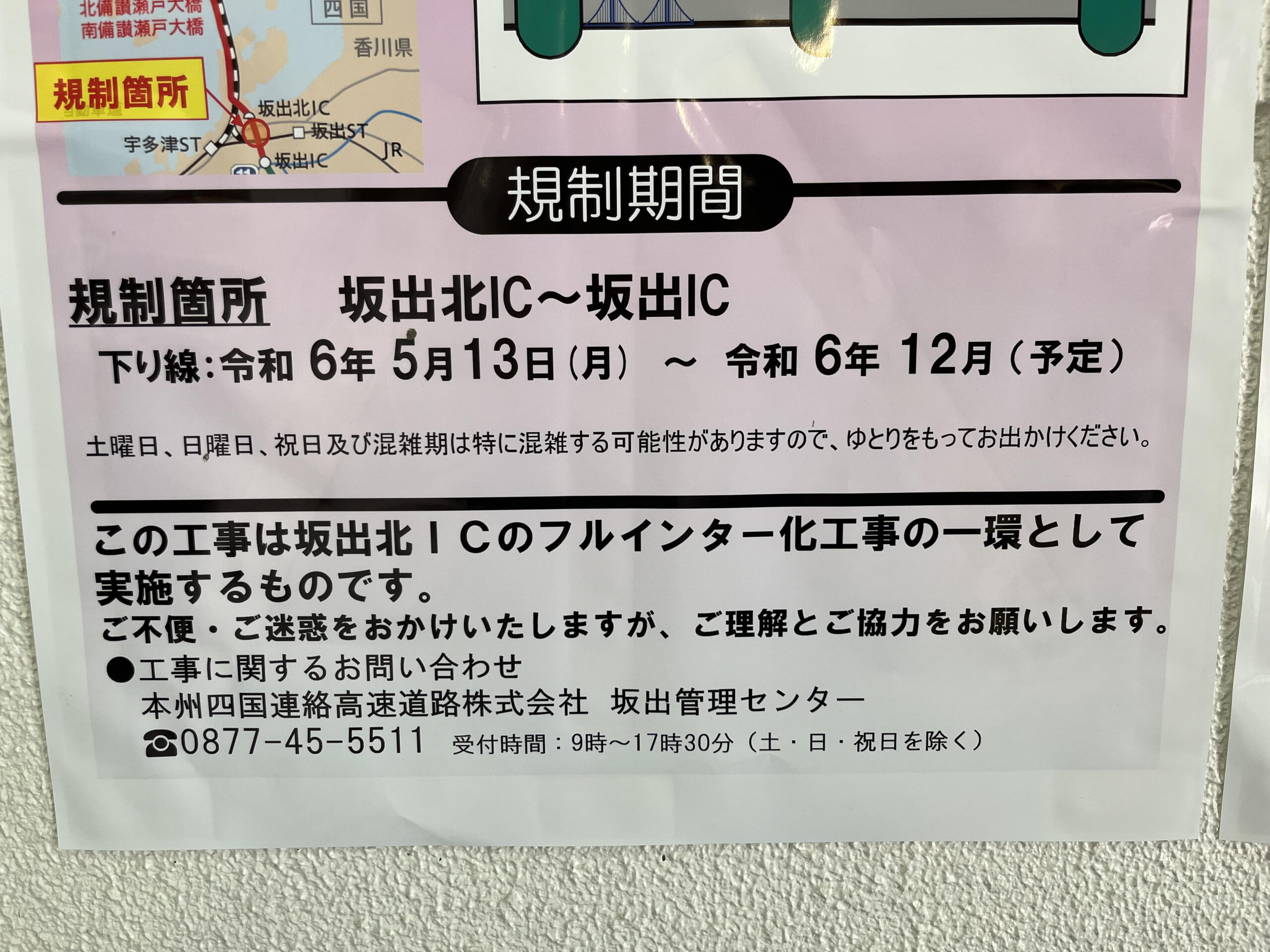 現在は坂出北ICは瀬戸大橋を渡るだけの為にあるんですよね。ワタクシも坂出北ICから高松方面にいけたらなぁって思ったことが何度もあります。坂出ICまで行かないと高松やその他の四国方面には行けないので、これが地味~にめんどくさいんですよね。フルインター化でどちらにも行けるようになるのはとても便利になるので、これくらいの期間の工事は我慢しましょうか。