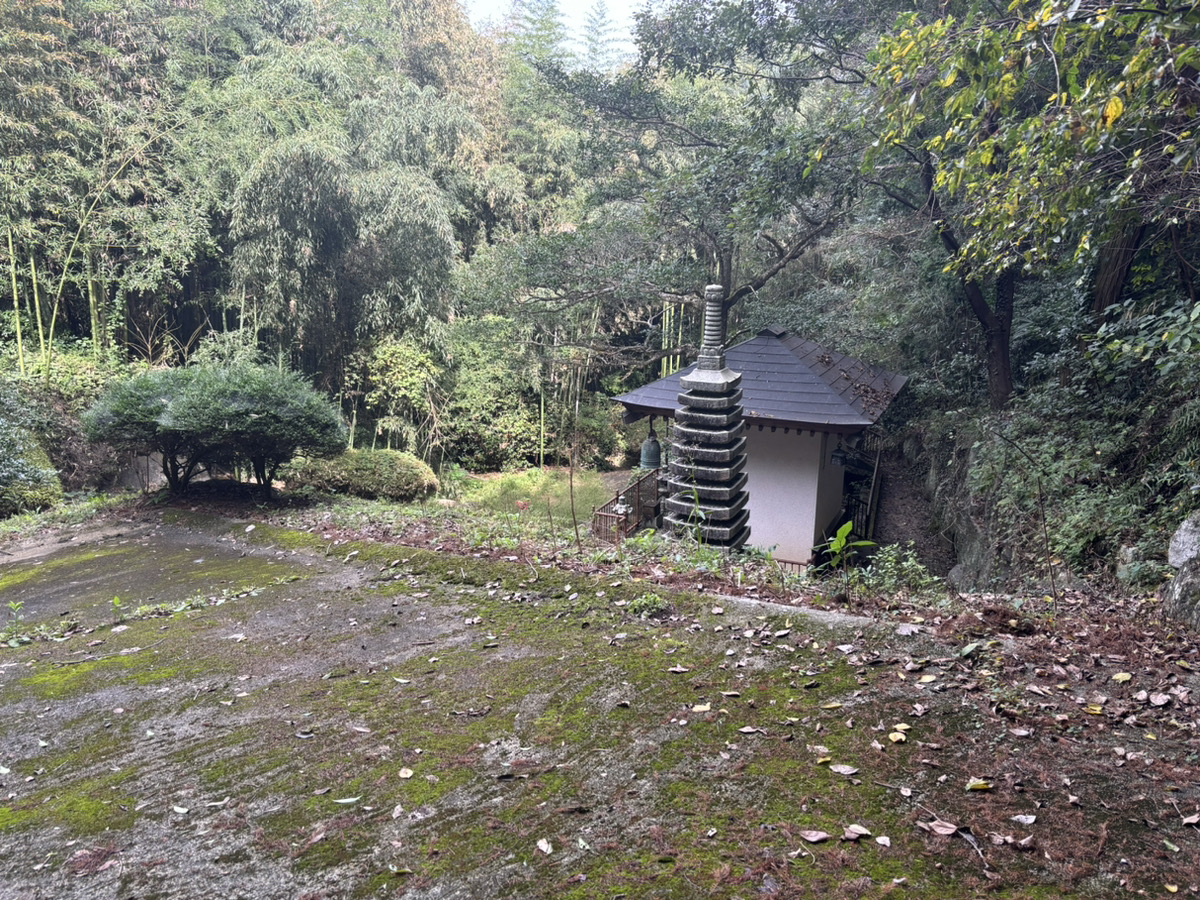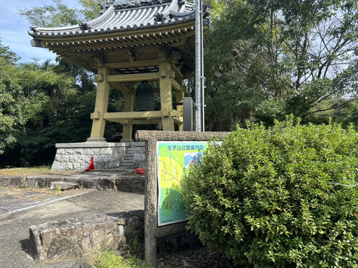 到着してまず出迎えてくれたのは立派な鐘です。この時点でちょっと不思議に感じたのは、周りを見渡してもお寺らしき施設は見当たらないんですよ。なぜ鐘だけポツンと!? こういうものを見ると鳴らしてみたい衝動に駆られますが立ち入り禁止の三角コーンを見て今回は諦めました。