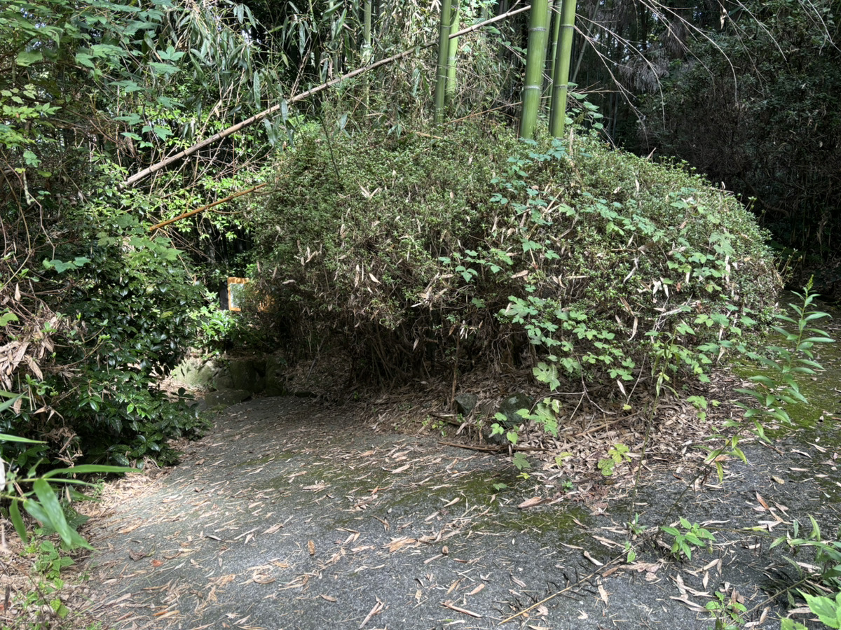 ただ小京都といっても静かなところで誰もいないので、恐怖心は残したまま恐る恐る奥に進むと竹に囲まれた坂道と小さな看板を発見!