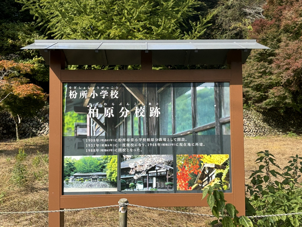 なんとか到着したところは枌所小学校柏原分校跡地です。まず読みがわからず「こなしょ」と読んでましたが正しくは「そぎじょ」で、漢字も「粉」のようで「枌」でした(汗)