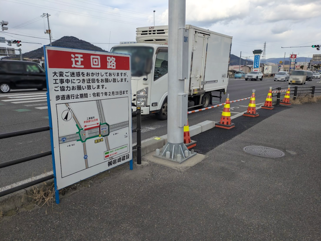 2024年9月ごろから始まった飯野交差点の改良工事。毎日通る人は「工事いつまでしよるんかな?」とか「そもそも何の工事なん?」と思ってる人も多いんじゃないでしょうか。