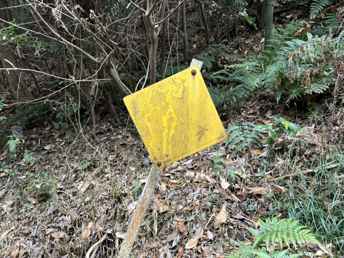 最後になりますが、どうしても伝えたいことがあります。車で通る時は気にならないんですが、歩いているとこの黄色い看板も何かが溶けて液体が垂れたような不気味な雰囲気を漂わせていることが分かります・・・よーく見てください。真ん中あたりにある黒いシミのような跡が人の形に見えてきませんか?